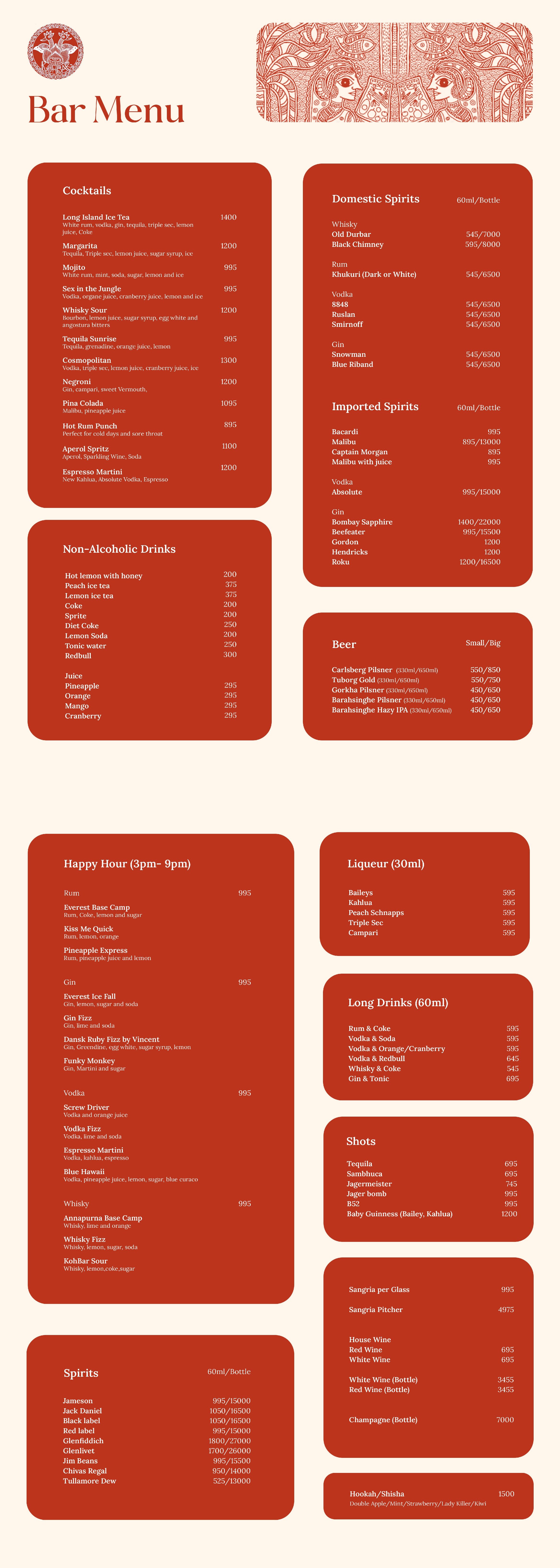 KohBar Food & Drinks Menu — Tiki Bar in Thamel, Kathmandu